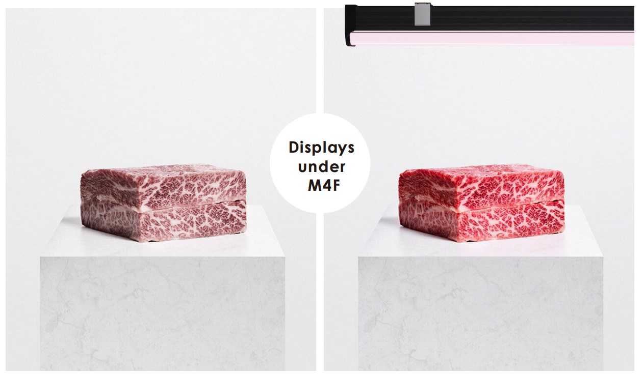M4 초슬림 스트립 조명을 기반으로,팬스타슈퍼마켓의 육류 섹션을 위해 특별히 스펙트럼 4000K+6500K+빨간색 660nm를 만들기 위해 광원을 조정했습니다. 이러한 고기 광 스펙트럼의 조명 하에서 우리가 슈퍼마켓에서 판매하는 고기는 더 육즙이 많고 신선해 보일 수 있어 고기 판매가 증가합니다.